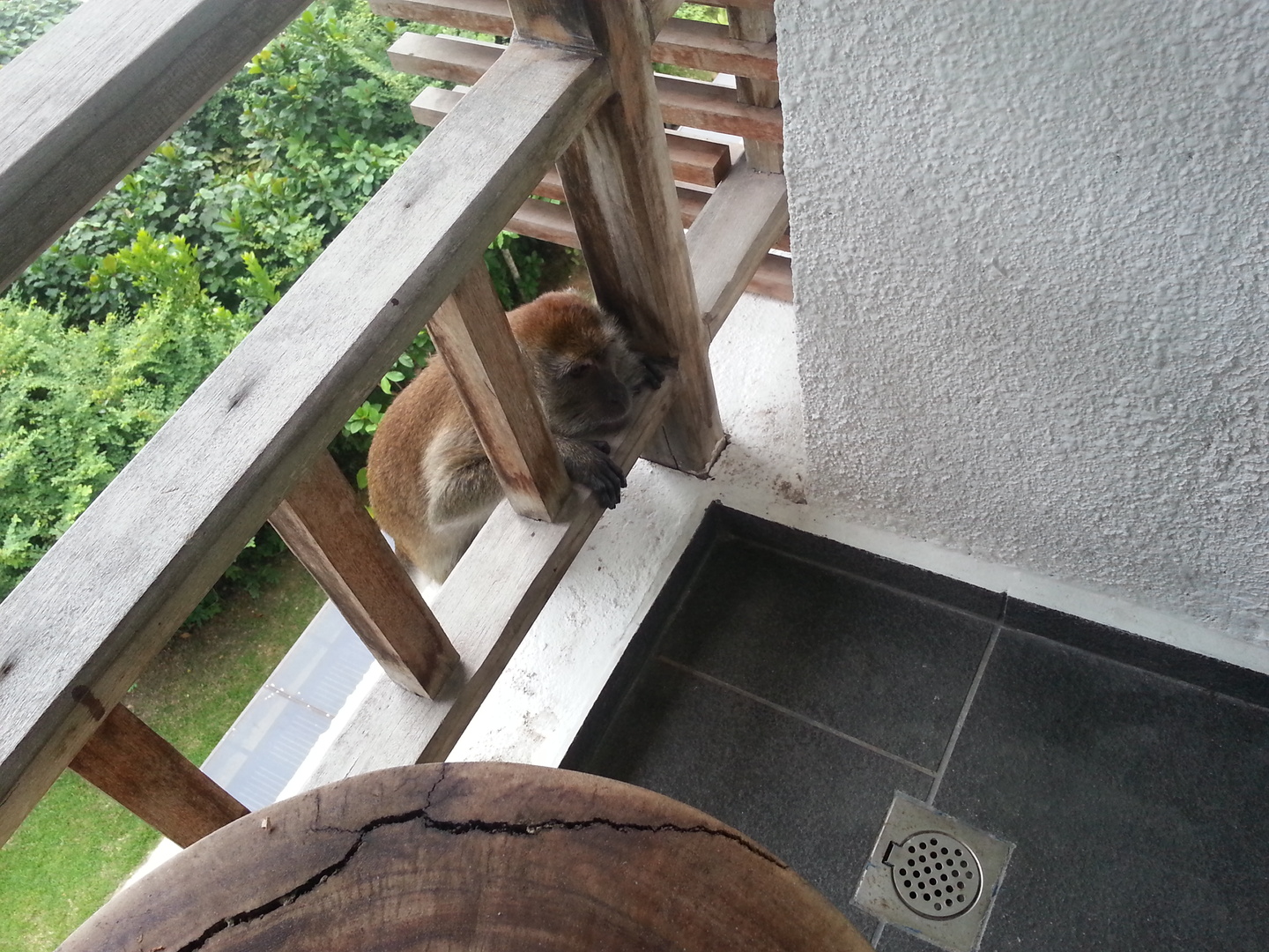 På eftermiddagarna gör sig mycket riktigt aporna synliga och vi får besök på vår balkong där vi sitter och avnjuter en kaffe från rummets egen espressomaskin (poddar).