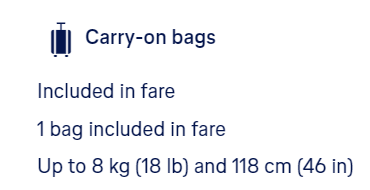 Lite konfunderad av bagagereglerna på en LH Light intra Europa som Senator. Jag kan väl inte komma med en rullväska som är 118 cm. Normalregeln för största måttet på ett handbagage är väl runt 56 cm?