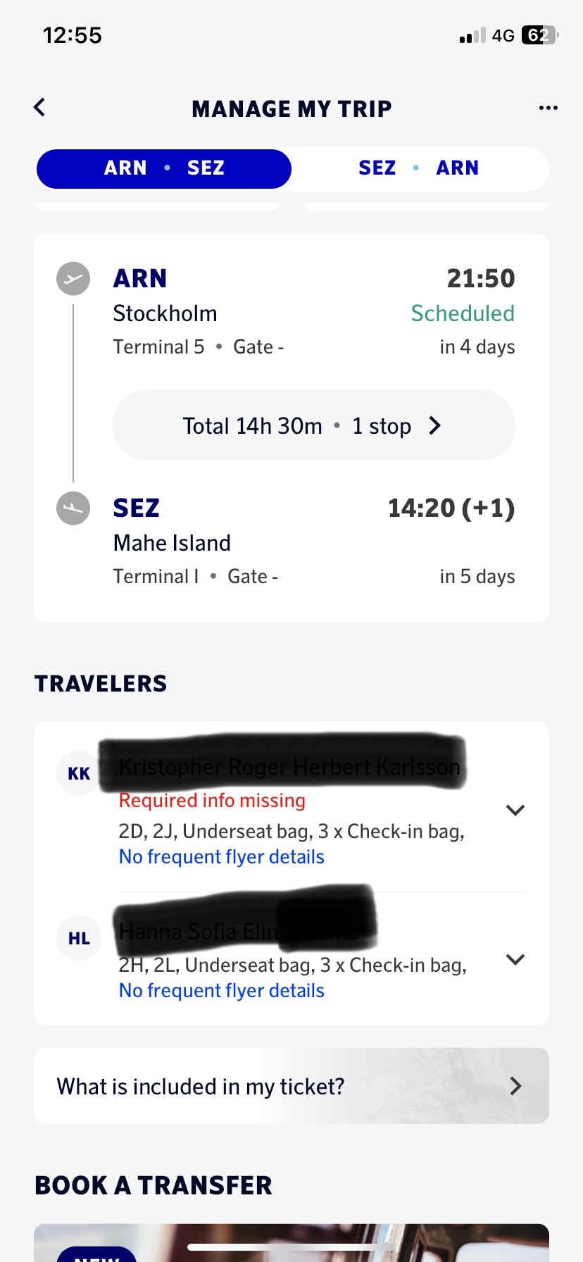 Har en härlig poängbokning med ET med avresa på söndag. SAS vill att jag i deras app kompletterar med info i bokningen. Det vill jag inte göra, av rädsla att dom ska sabba bokningen. För i ETs app ser väl allt perfekt ut?