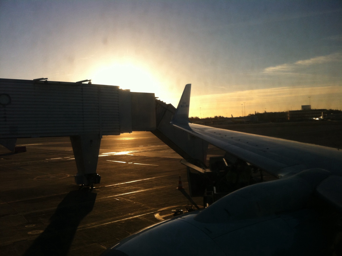 Jag har 45 min på AMS, och här på ARN "garanterar" personalen i gaten att det inte blir några förseningar. Återstår att se... Detta blir spännande. Hur som helst, strålande väder!