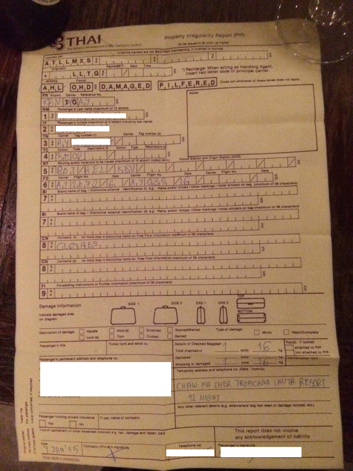 Min svärmor och hennes man anlände till KBV för 22 timmar sedan. Hennes bagage fanns ej med på planet. Hon har anmält på flygplatsen och fått ett "PIR".