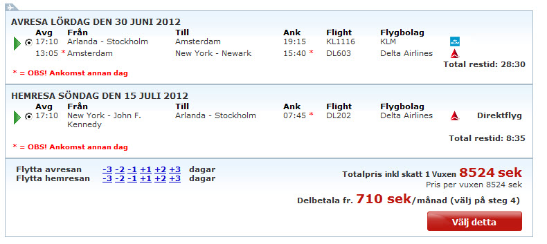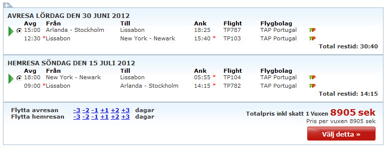 Hemresa någon av dagarna 13,14, eller 15:e från någon av flygplatserna i New York.