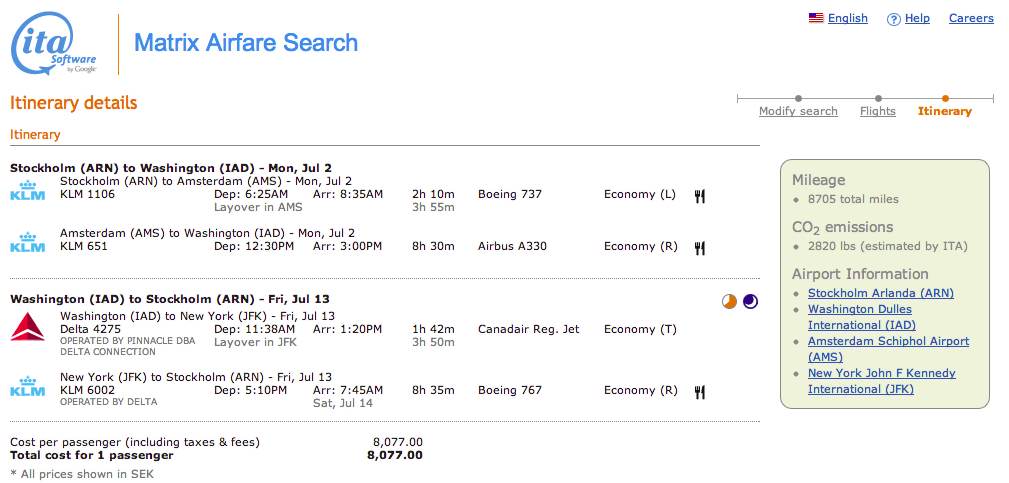 Utresa från Stockholm till antagligen Boston, Washington eller New York. De närmsta dagarna efter nu på söndag den 1 Juli.