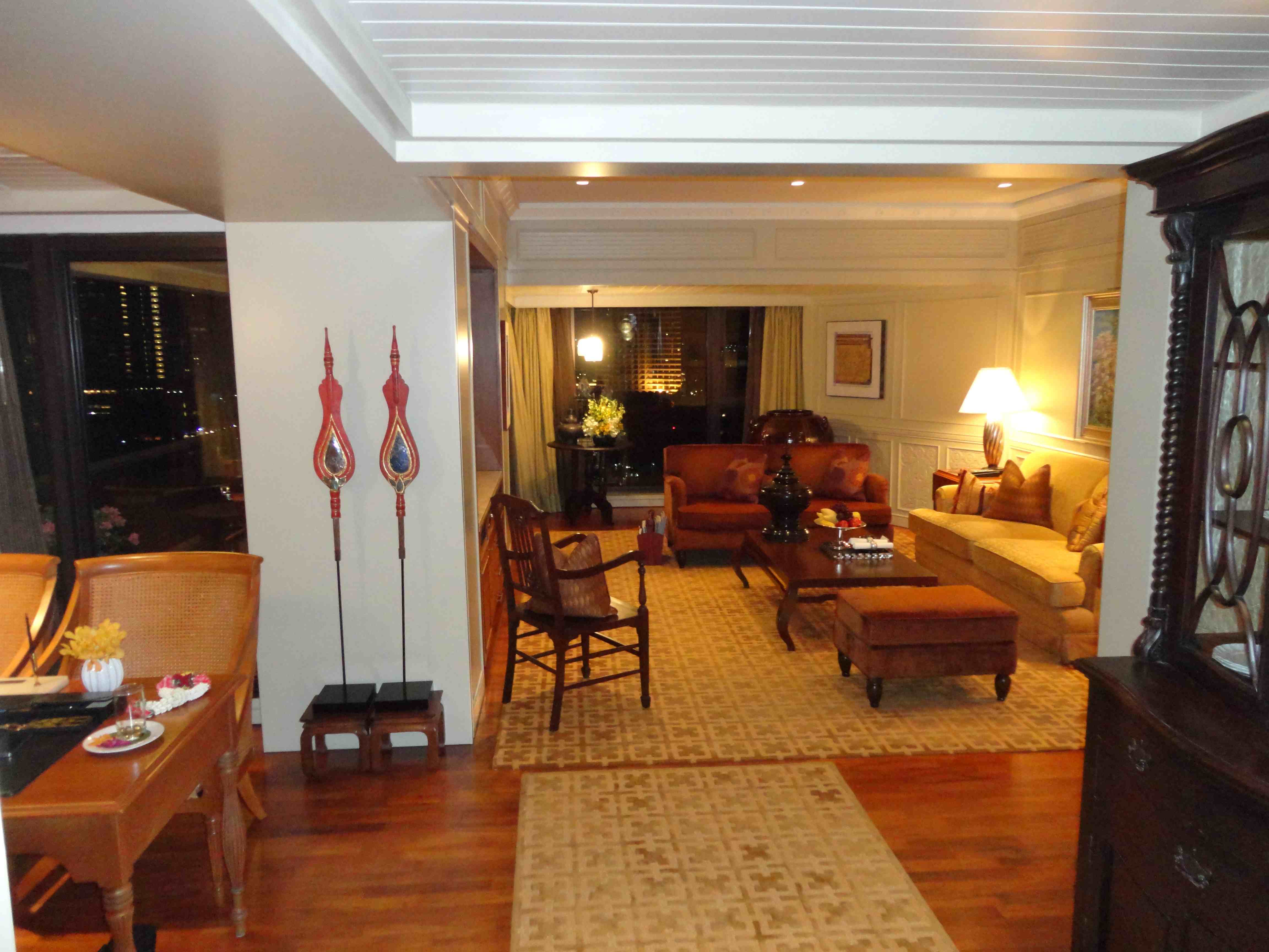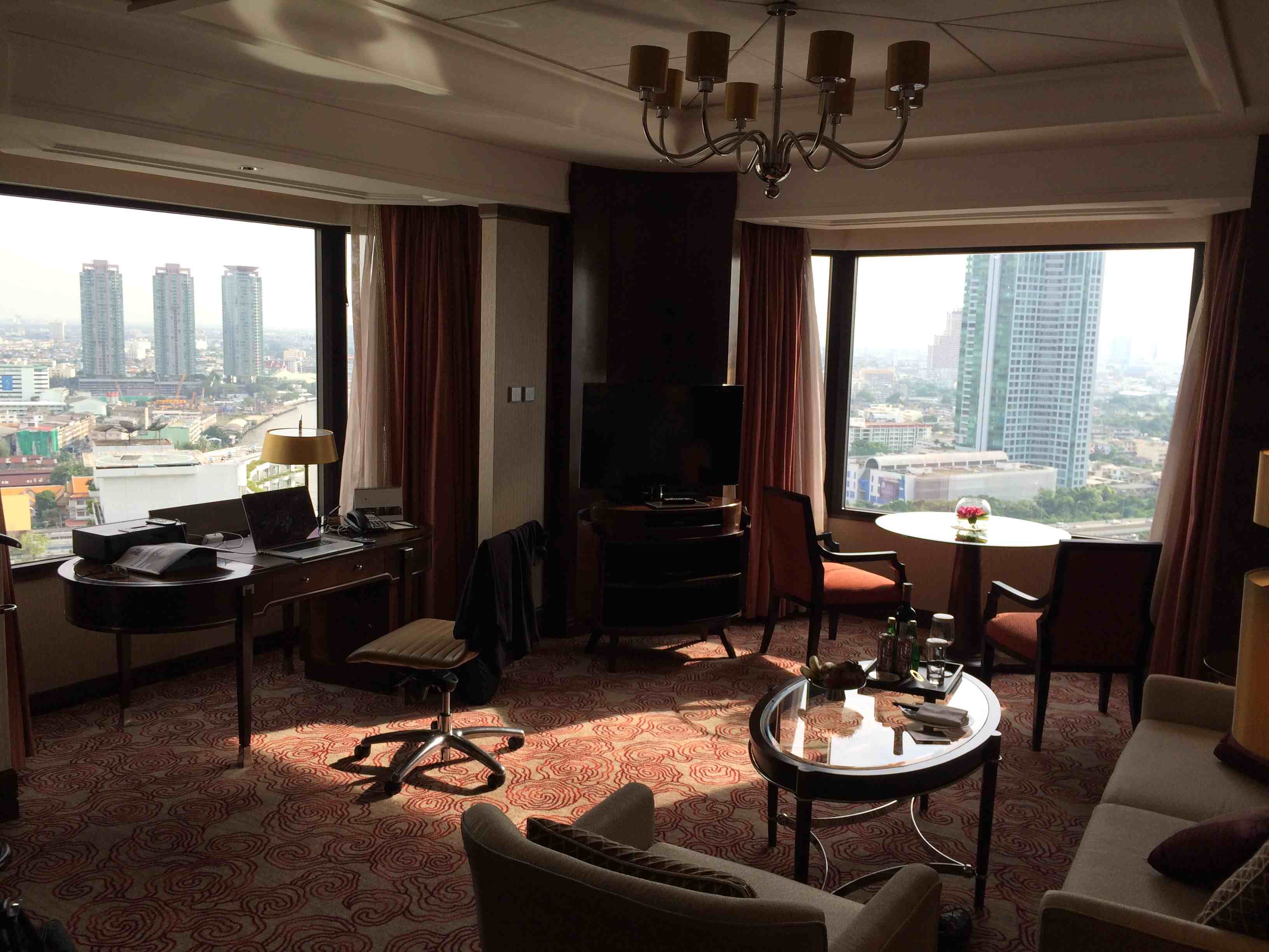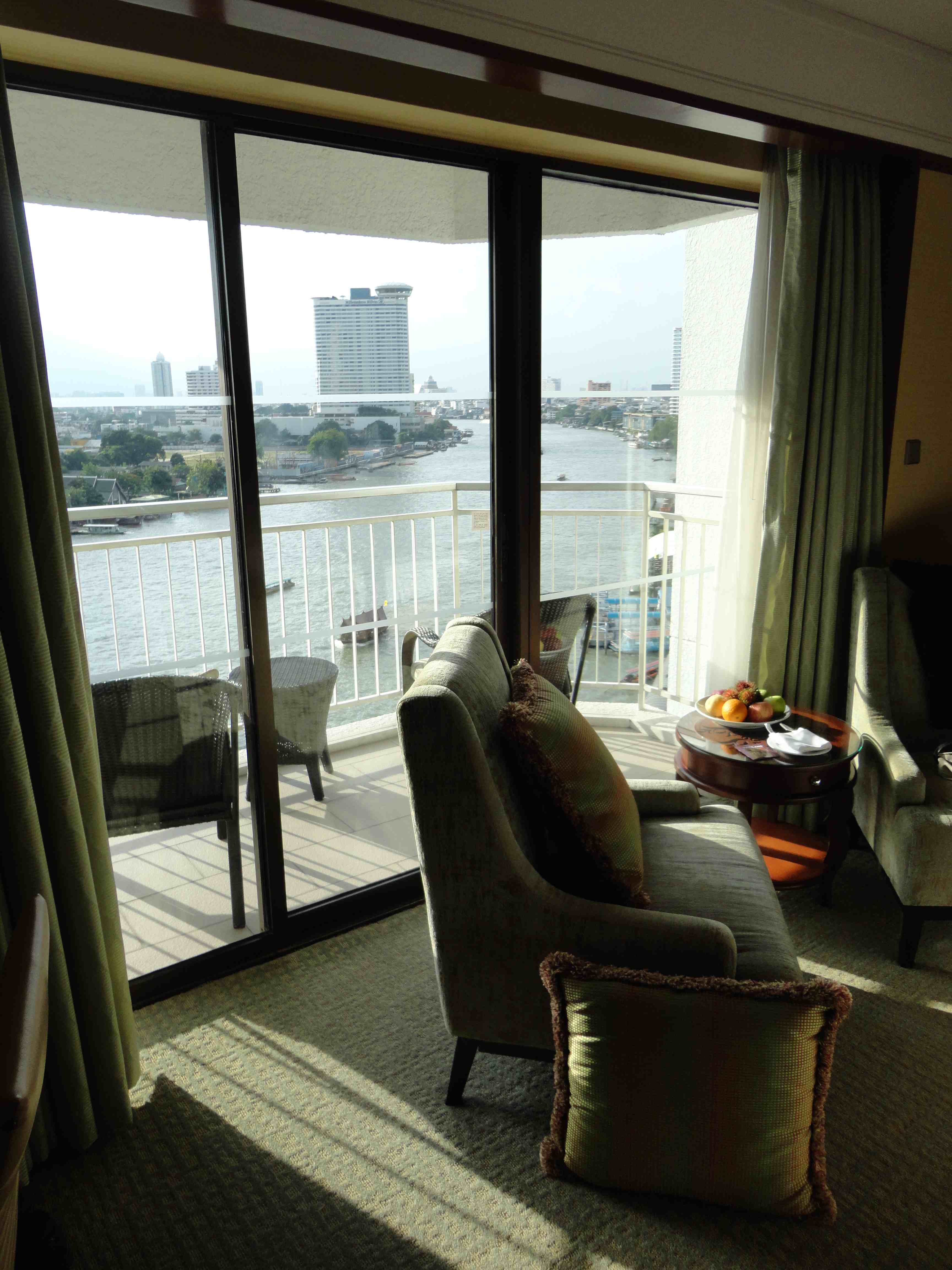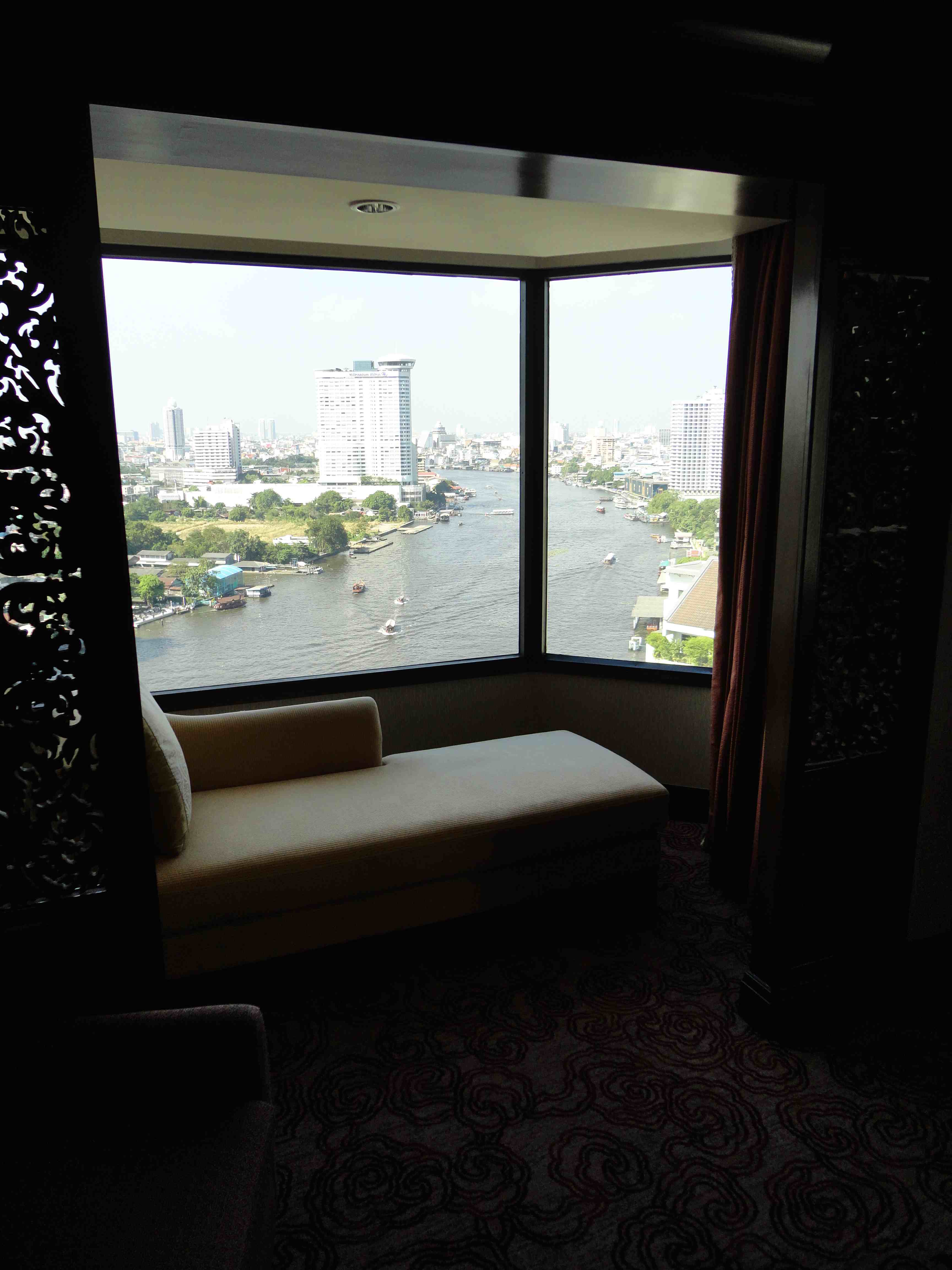 Jag tycker att det som verkligen sätter ger lite karaktär över en vistelse i Bangkok är utsikt över floden, och det finns ett antal hotell med rum som har fin flodutsikt. Självklart är Oriental ett sådant hotell. Sikta i så fall på sviterna som är på kortsidan högt uppe i den nya byggnaden (dessa rum har även balkong mot floden). Jag har bifogat en del bilder från en sådan svit.