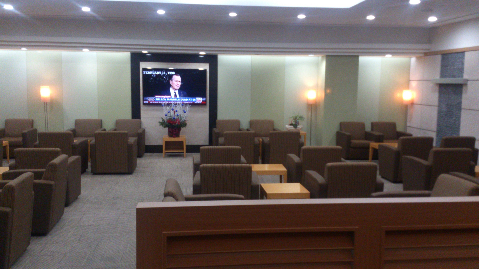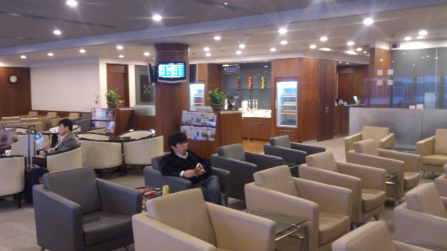 Sitter helt själv i Asiana Lounge på PUS och dricker en kopp kaffe. En liten lounge med begränsat utbud, kaffe, läsk, öl, vin samt två sorters whisky ( Jack Daniels och JW Black) nötter och några få sötsaker att äta. Funderar på att testa att ta mig in i KAL lounge som ligger vägg i vägg med mitt Priority pass och kolla vad de har.