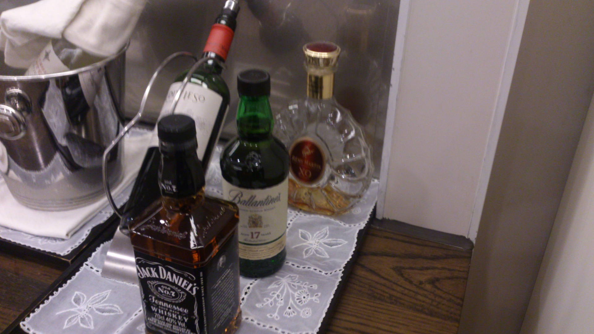 Utbudet här är liknande fast de har lite mer och äta och JW black är ersatt av Ballentines 17 yo samt att de har en konjak, Reny xo.