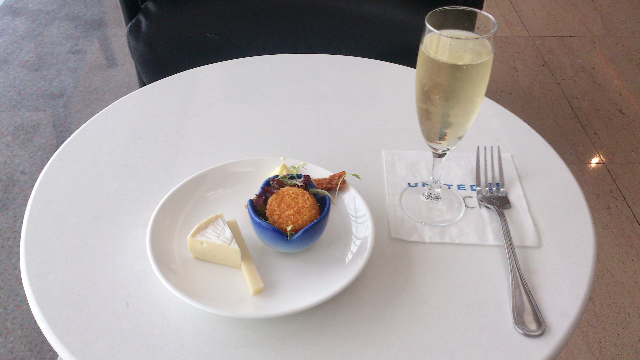 Då sitter man i Uniteds F lounge på HKG, tar ett glas bubbel och lite tilltugg, är jag och en till här. För övrigt en fin lounge