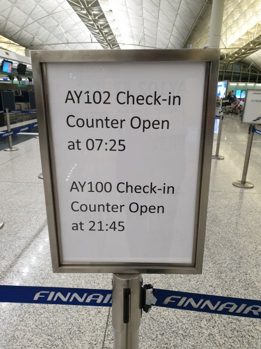 Finnair har s.k. dagen-innan-incheckning om man använder MTR/airport express från central eller kowloon. De hanterar allt exakt som en vanlig incheckning, du får BP mm. Öppet i i stort sett hela deagen och du droppar väskor där.
