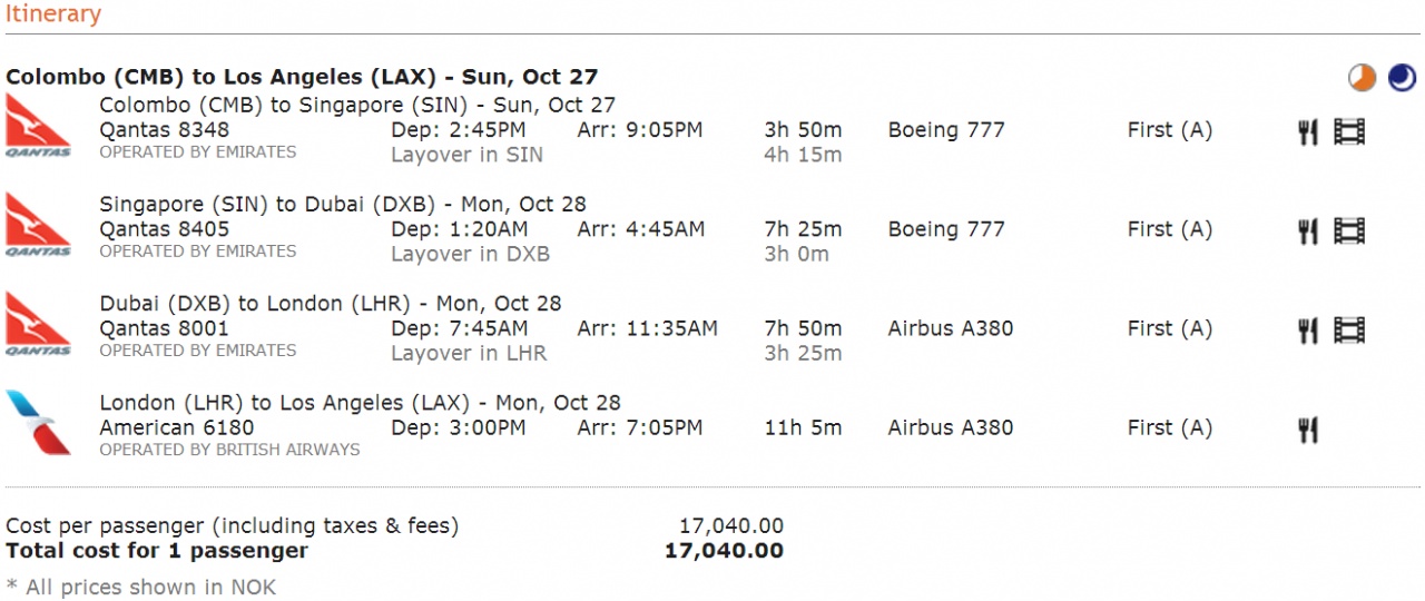 Finns ju faktiskt en möjlighet att få samtliga flighter i first...bara man väljer rätt rutt och bolag.