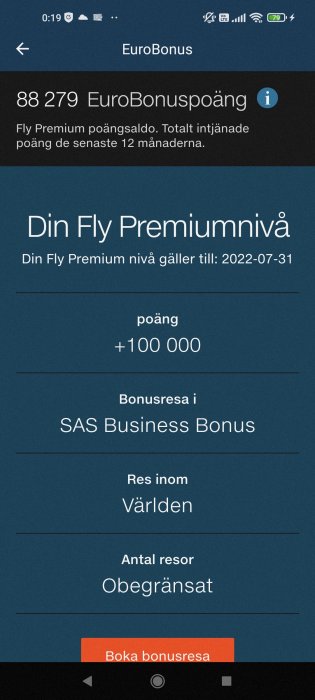 Sådär då, ett år till med högsta nivån. Skönt att ha coop-poäng som reserv. Jag har inte utnyttjat fly premium på över 2 år. Hoppas det kan bli ändring på det snart. Vore kul att göra nypremiär med SAS business till Toronto! :)