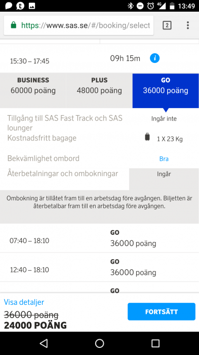Snygg bugg! Innebär ju att det blir billigare att köpa två enkelresor eftersom felet inte inträffar vid bokning av tur&retur.Business verkar inte gå nej, men däremot ser det ut som att man får rabatt även på resor i Go... 24k istf 36k på ARN-ORD enkel resa.