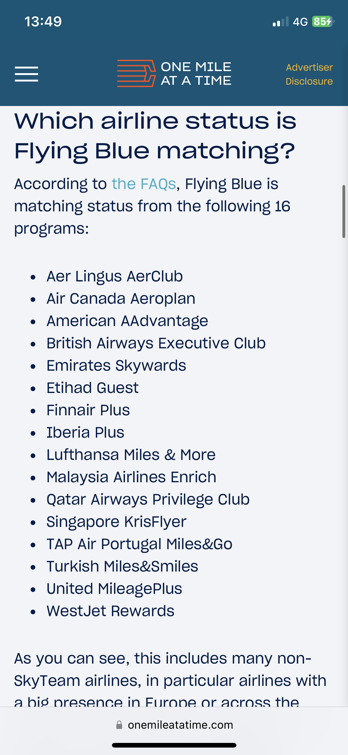 Både Star Alliance och OneWorld verkar nu ha möjlighet att, mot en betald summa, få sin status matchad i Flying Blue.