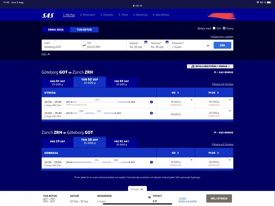 Bilderna i inlägget #5127 är när jag är inloggad. Däremot har jag inte varit inloggad och försökt boka den vanliga vägenHur ser det ut hos dig i inloggat läge när du söker? Så här ser det ut hos mig på random datum i september...