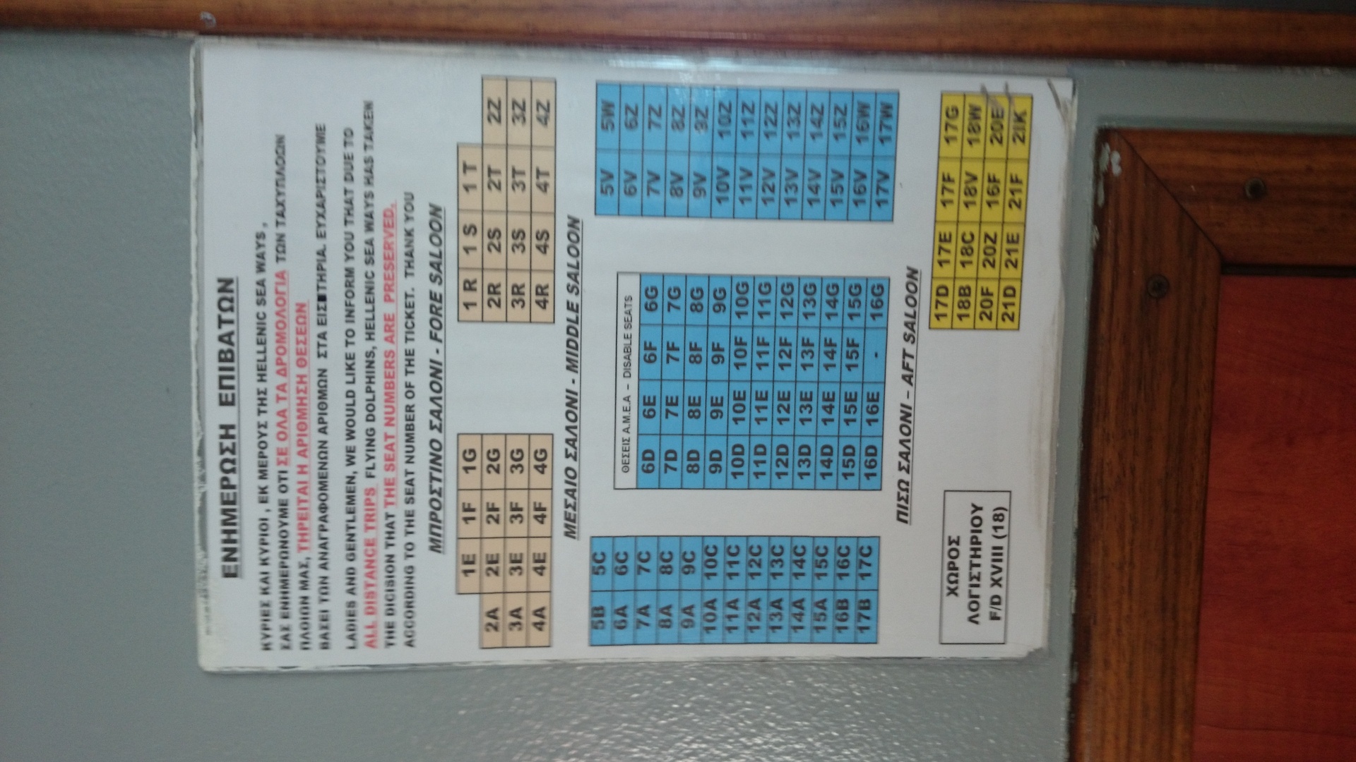 Fredag på en mycket mysig grekisk ö. Ikväll blir det fotboll på ett ouzo-ställe. I övrigt så är det strålande sol och 25 grader i vattnet. För att ta sig till denna ö krävs det att man tar Flying Dolphin. Det går två bolag hit och nu har det ena infört bestämda säten. Skickar med en bild på seat mapen. Logiskt någon? Hade för övrigt 8Z på vägen hit och fick stå och leta ett tag...