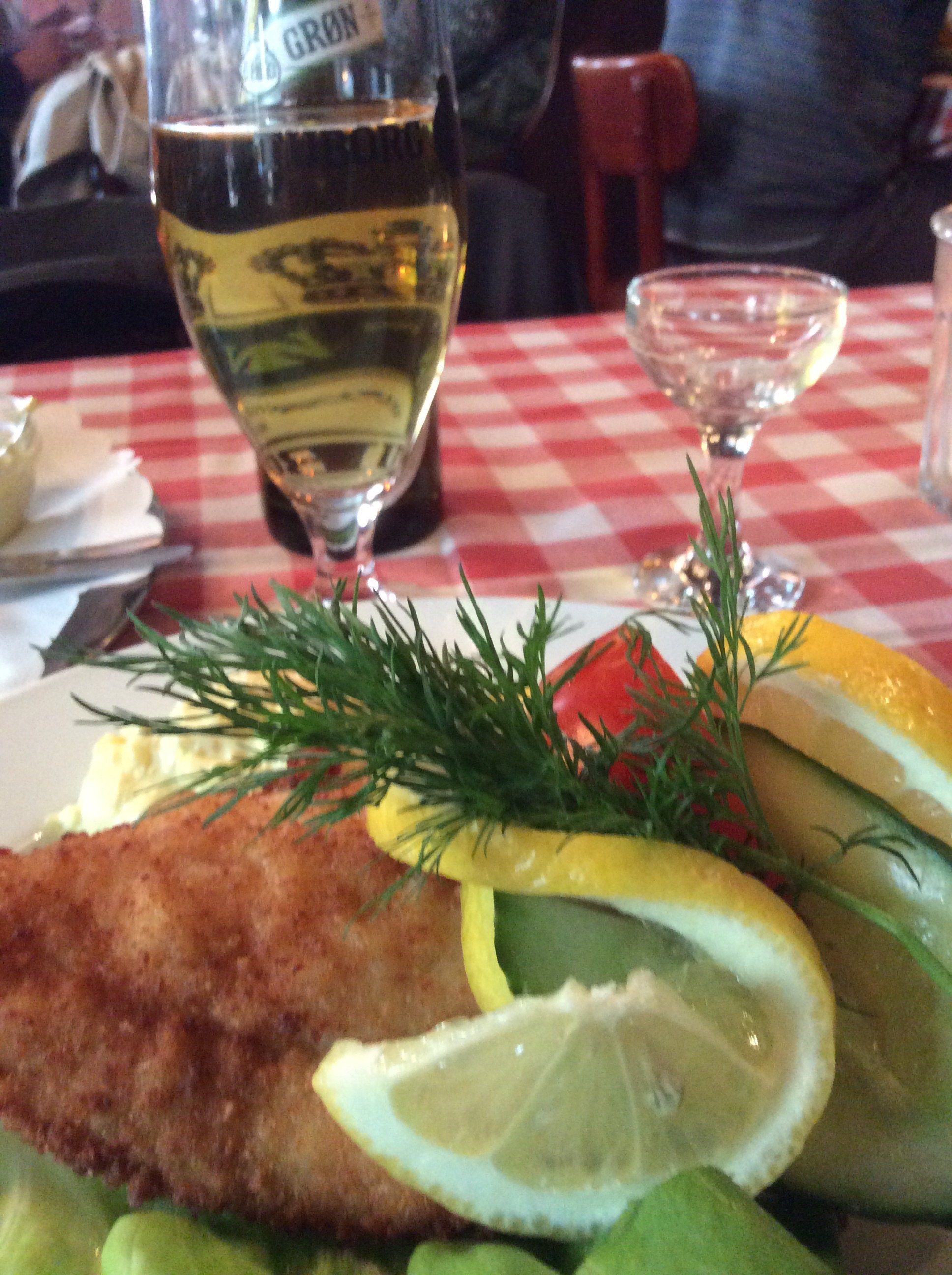 Eftersom det var den årliga hälsokontrollen hos företagsläkaren för en månad sedan, således 11 månader innan nästa kontroll så beställdes mina favoriter, fiskfilé och leverpastej som sköljdes ned med öl