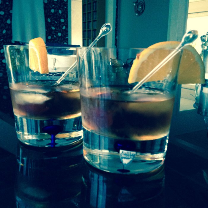 En Old Fashioned skall blandas med ytterst lite Soda.