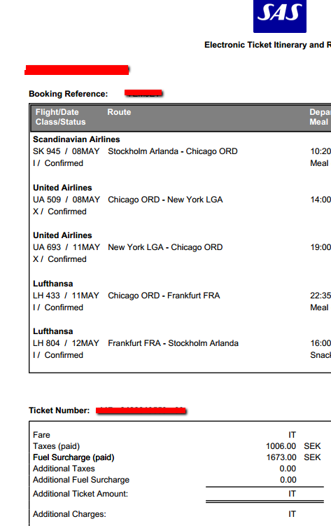 Fuel surcharge för Star Alliance bonusbiljett som innehåller SAS flight
