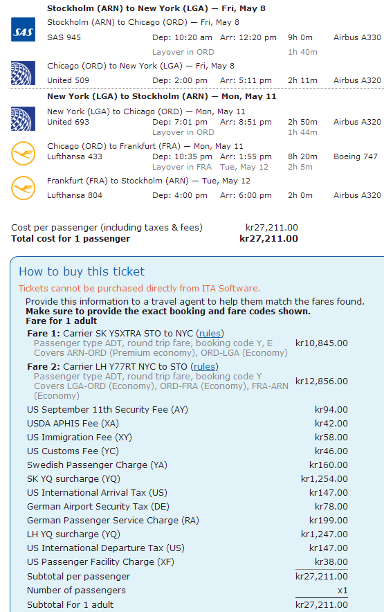 Så här ser avgifterna ut för ena biljetten: