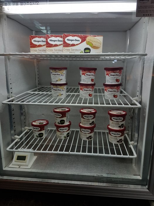 Huvudvärken och illamåendet hade börjat släppa men inte helt, så något starkare att dricka var det inte tal om. Däremot upptäckte jag till min stora glädje en frys med Hägendasz-glass, ur vilken jag snabbt tillgrep två bägare.