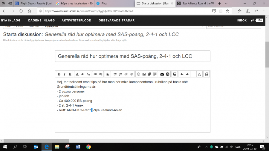- Rutt: ARN-HKG-Perth-Auckland-Christchurch-Asien (nånstans)-ARN, stopover på samtliga destinationer