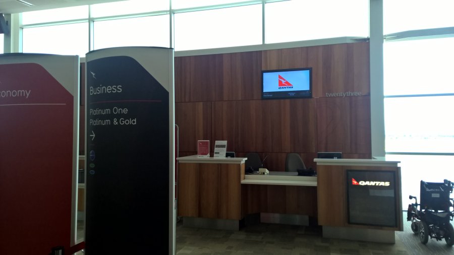 Dedikerad business/priority kö för Qantas gjorde att incheckningen snabbt var avklarad. Ingen möjlighet till cashupgrade då flyget uppenbarligen var fullt. Priority tag dock samt direktion till lounge. Ingen fast track används på Terminal 1 i Adelaide, förmodligen för att terminalen mest används för inrikesflyg och ett och ett annat SQ flyg, dock var köerna relativt små denna morgon, men avsaknaden av förmåner började redan göra sig påmind!