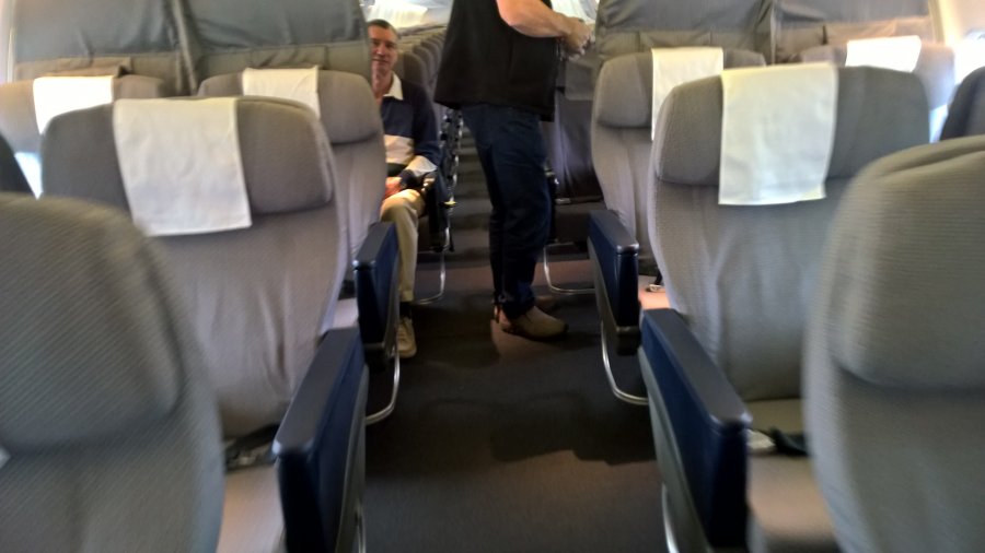 Paxade nödutgång tack vare OW status så det var nåt i alla fall. Annars såg benutrymmet inte mycket ut att hurra för. Pluspoäng för en väldigt strikt boarding samt genomgång av sittande vid nödutgångar. Stolar låstes innan take off samt ett tydligt ja krävdes som godkännande av reglerna vid nödutgångarna. Detta är något som jag inte reflekterat kring förrän i våras, då jag på ett annat bolag satt vid mittennödutgång och skulle beställa en öl och blev nekad för att jag hade ett ansvar vid nödfall. Detta var på ett ökänt LCC bolag (Airasia), dock har jag aldrig råkat ut för detta tidigare på mer renommerade bolag. Lustigt nog heller aldrig reflekterat över att bli serverad alkohol samtidigt som man egentligen har ansvaret vid nödfall. Kudos till Kangaro.....jag menar Qantas.