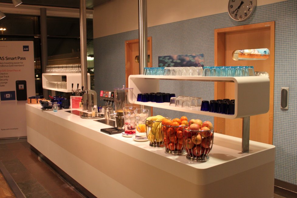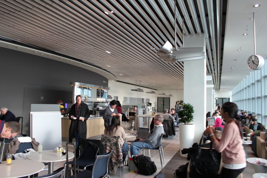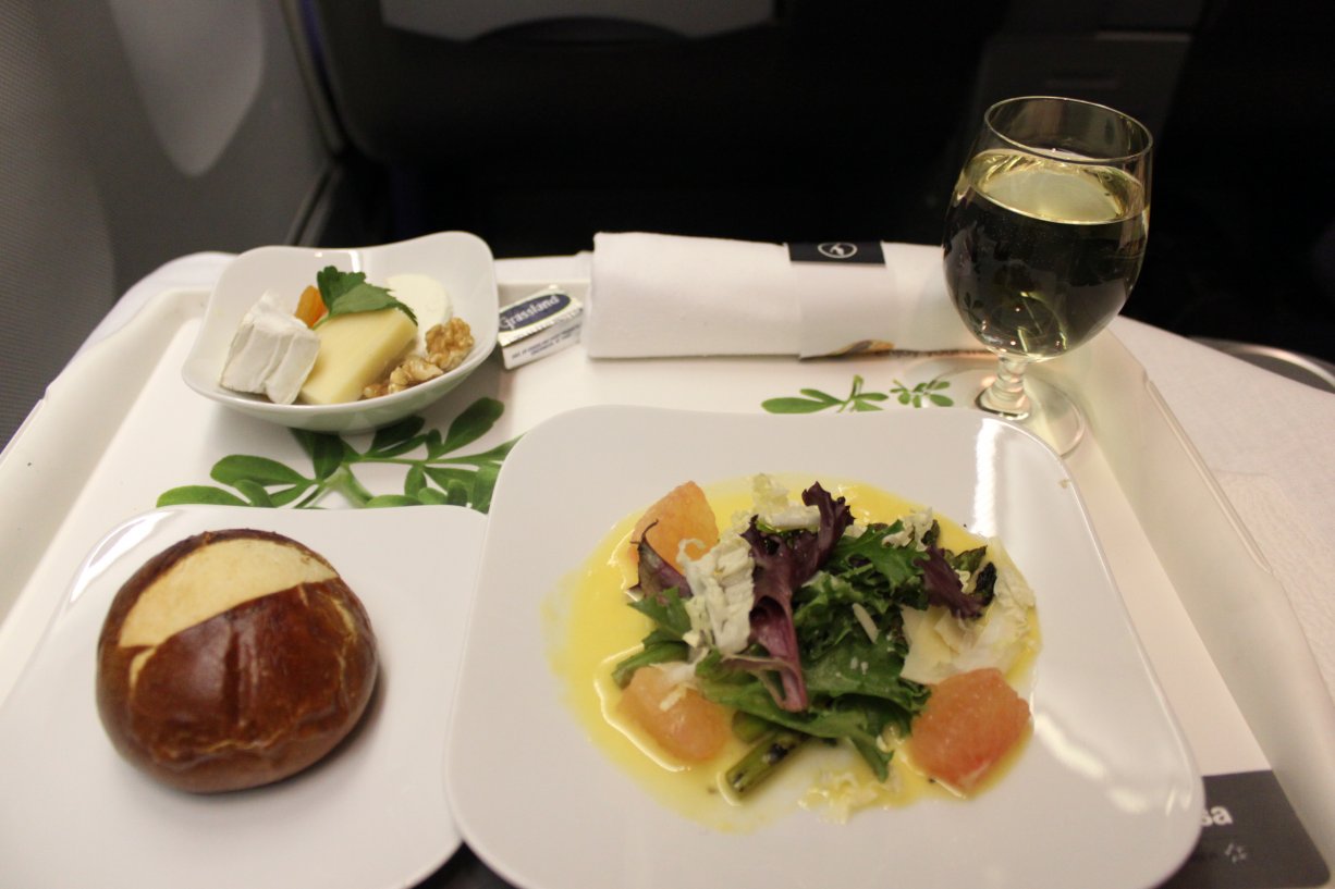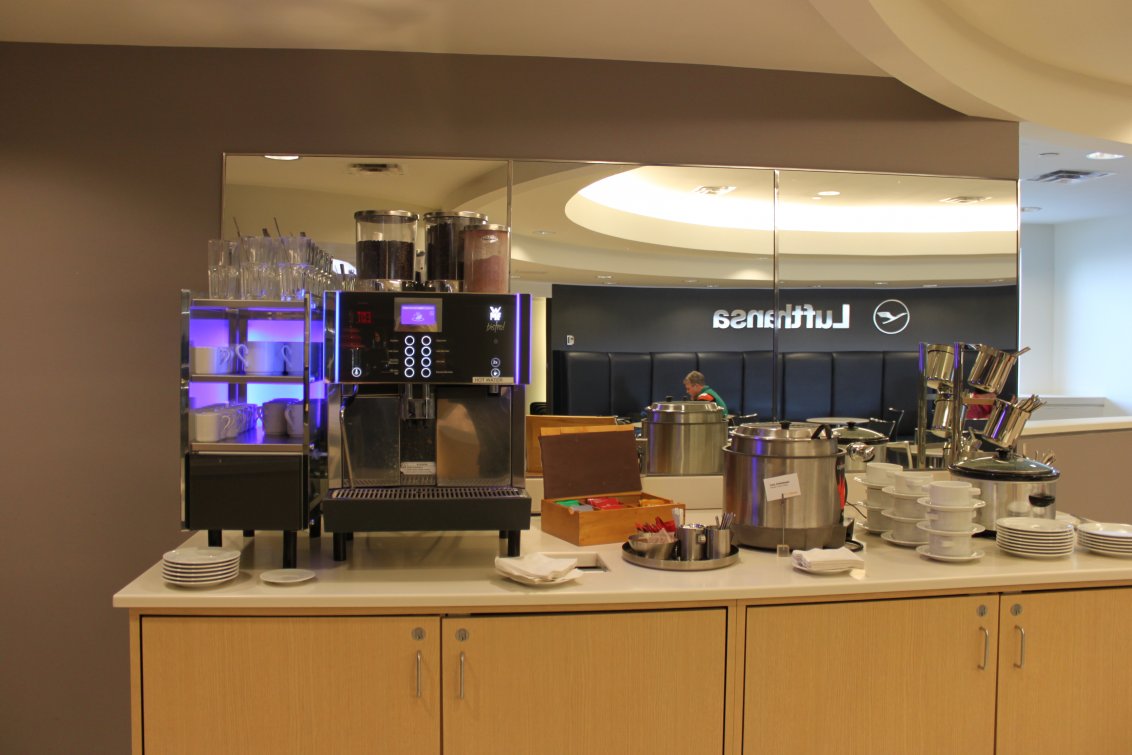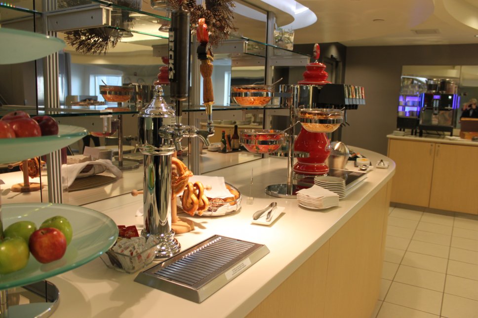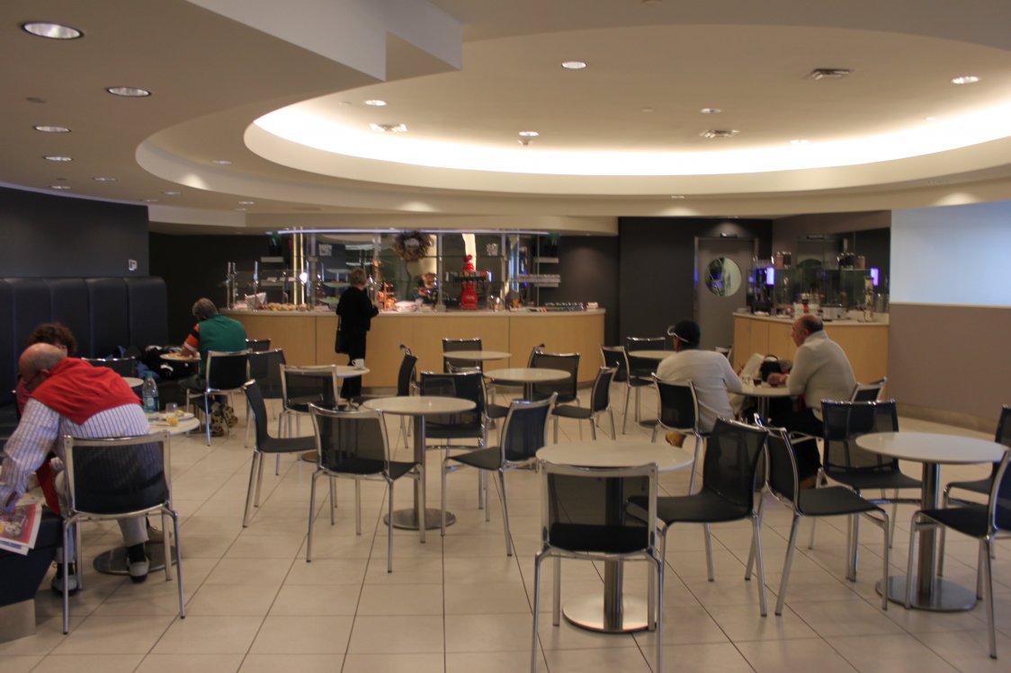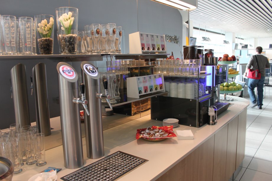 Loungen ligger i markplan och har viss utsikt över plattan och Lufthansas gater. Det fanns ett blandat utbud av mat såsom ost, sallad, mackor, fransk löksoppa, köttbullar, chokladmousse, godis och chips. Som dryck fanns 2 sorters vitt, 1 rött, 1 mousserande, 2 sorters öl(Becks och en belgisk), diverse finsprit, iste och läsk. Även kaffe och te fanns. Loungen var en angenäm upplevelse och även boarding skedde härifrån så allt var väldigt smidigt!