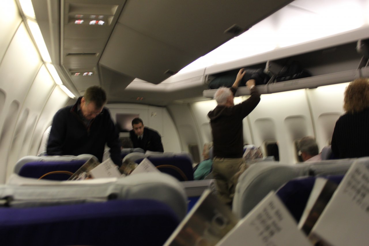 Boardingen var försenad med 20 minuter, men vad gjorde det? Kom smidigt till jetway. Hämtade ut det tax-free vi hade köpt. Sen blev det en trevlig kommentar väl ombord; ”It's left for you sir”. Jag vet att det är vardag för vissa av er, men för mig var det första gången jag fick svänga vänster =). Att sitta i nosen på en B747 var en härlig upplevelse. Det var en mysig kabin med gott om plats.