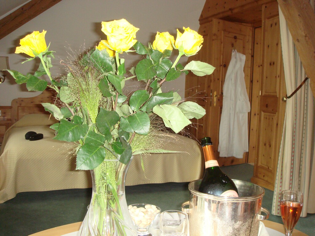 Dessutom finns möjligheten att äta sin frukost på rummet, utan extra kostnad. På sedvanligt manér fyller man i en lista, som hängs på dörren. Frukosten dukas upp på bordet och man får även en så kallad Bulletin. Good Morning, Dear Guest eller Guten Morgen, liebe Gäste börjar texten. I denna dagsbulletin presenteras, förutom dagens väder, även tips på lämpliga utflyktsmål och aktiviteter i och kring Pontresina. Dessutom levereras en dagstidning, såsom NZZ (Neue Züriche Zeitung) till frukostläsningen. Ett mycket behagligt sätt att börja dagen!