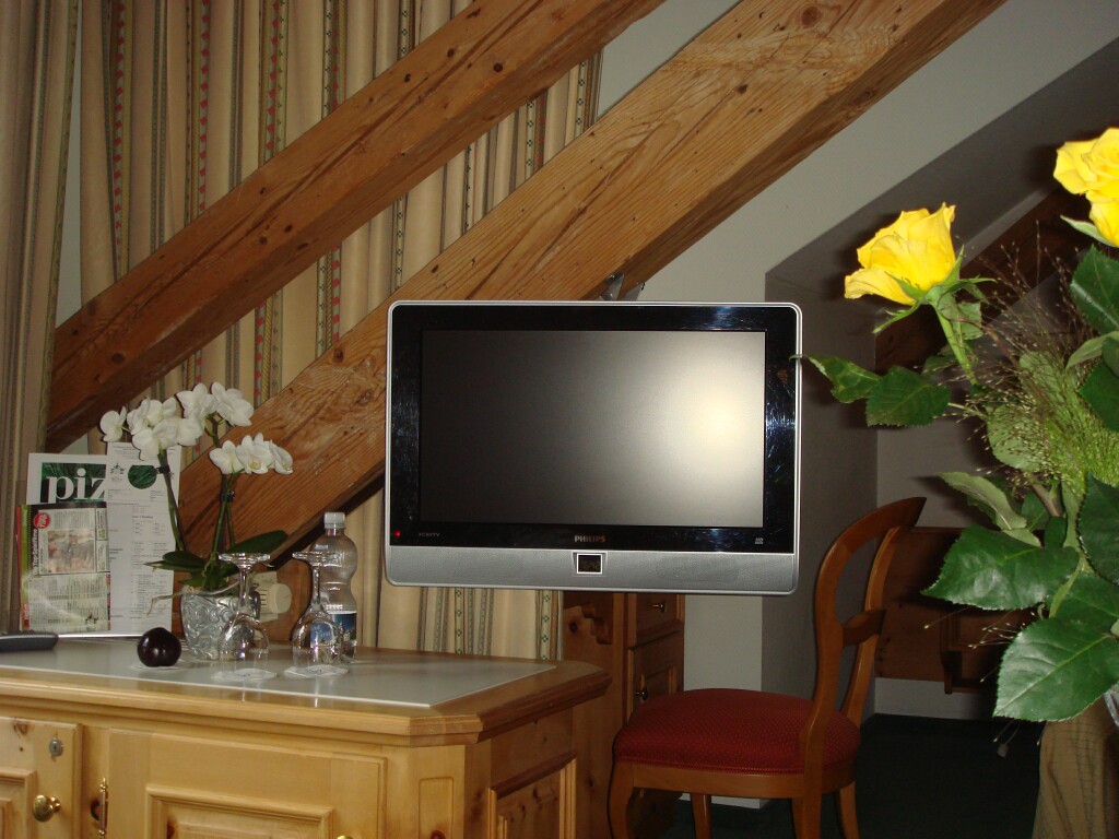 I rummet fanns även en liten plasma-TV med ett 40-tal kanaler. Flertalet av kanalerna är på tyska, franska och italienska, men även ett par engelskspråkiga kanaler fanns. Hotellet erbjuder även gratis trådlöst Internet genom Swisscom. Man får en liten lapp från receptionen med inloggningsuppgifter, som gäller under hela vistelsen.