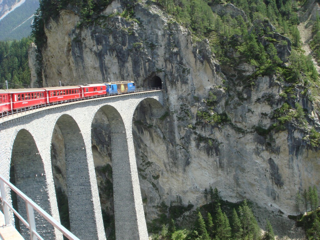 Resan fortsatte efter ankomst till Zürich med tåg till Chur. Jag hade via sbb.ch köpt en så kallad Transfer Ticket. Den gäller från flygplats till slutdestination på valfri ort i Schweiz. I Chur bordade vi Rhätische Bahn för en angenäm resa på Albula linjen.