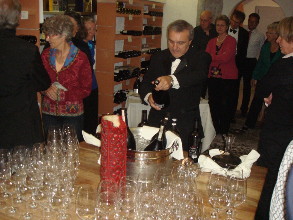 Vi blev en kväll inbjudna till vinprovning i hotellets vinkällare. Ägaren Thomas Walther inledde och sedan tog huvudkyparen Dino vid. Ett par delikata mousserande viner ifrån Italien blev provade: Antica Cantina Fratta Franciacorta