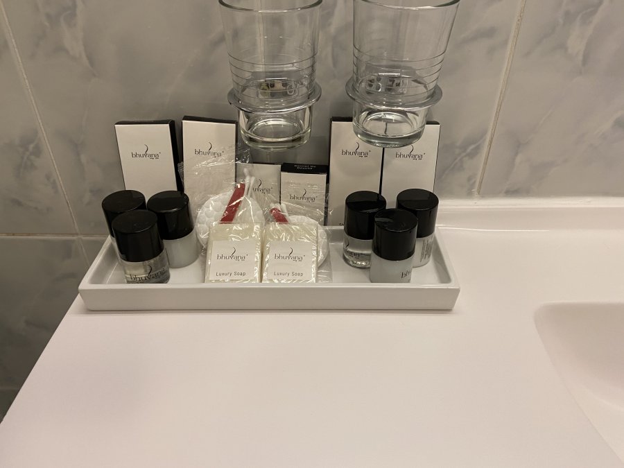 Välkomstgåvan var väl sådär med 2 flaskor vatten på glasflaska och 2 müslibars.