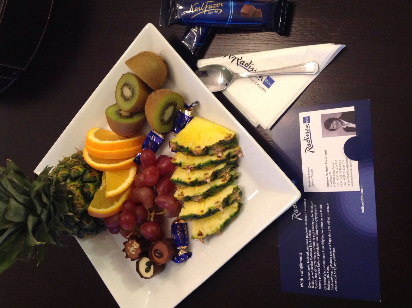 Uppgraderad från Superior till Juniorsuite på Royal Viking (CCC), samma rum som jag bodde i tre gånger förra året. Använde Club Carlson Room Availability Guarantee denna gång. Bra bemötande som vanligt. Sedvanlig välkomstgåva (Loka, apelsin, päron plommon) med tillägg en liten Radisson-chokladask. Är det förmånen för Concierge