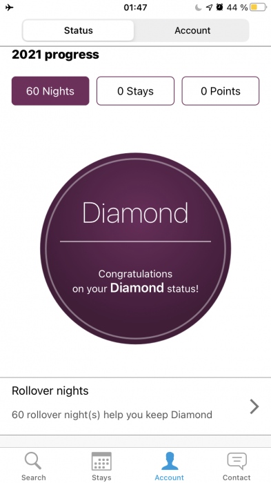 Har 71 nätter från 2020 och 43 nätter bokade under 2021. Om jag förstått det rätt så kommer 2020 års nätter att rullas över till 2021 och automatiskt ge Diamond till 2023. Kommer 2021 års intjänade nätter rullas över till 2022 och ge Diamond till mars 2024 eller måste jag börja om från 0 nästa år?