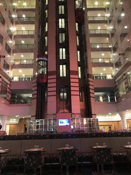 Hissarna går med utsikt över baren/restaurangen: