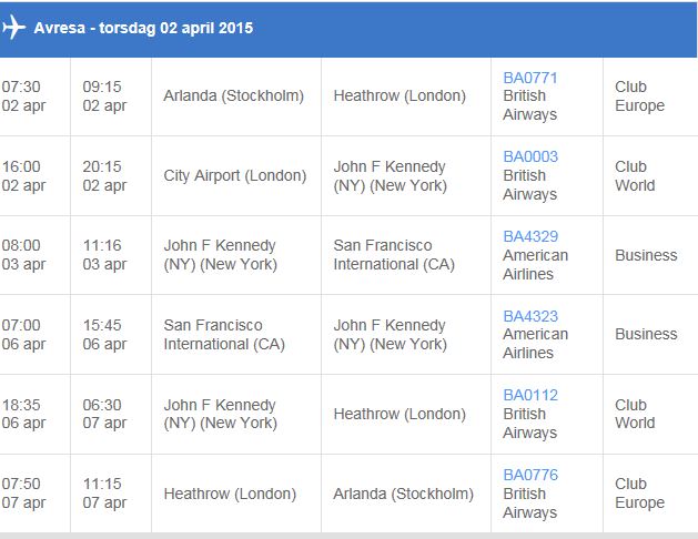 Ah, då förstår jag. Men då är BA003 det näst bästa alternativet till JFK. Jag skulle också se om det går att boka AA segmenten som AA-flighter i A-klass för att maximera antalet TP.BA 001 verkar inte ha några avgångar den 2, 3 eller 4 april. Den 1;a april så finns det inga I biljetter