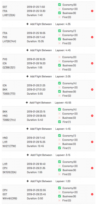 Den där är tyvärr inte bästa valet då Lufthansa kör B744 på FRA-ICN under vintertabellen (W18/19) så om tanken är att byta FRA-ICN till Lufthansa First så faller den på eget grepp. Däremot flyger Lufthansa med en A380 till BKK, men den har visat sig svår att komma åt.