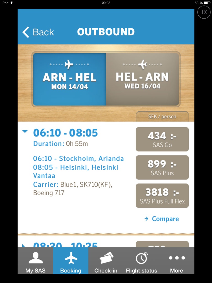 Ville jag åka med SAS så var det kl 1605 som gällde! Hoppas att det går bättre för dig Tommy!