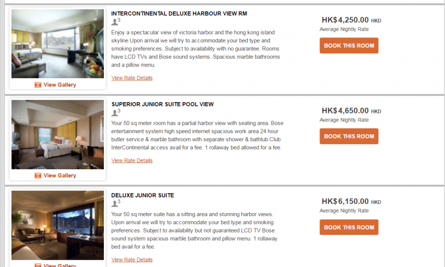 Jag bodde på IC Hong Kong i somras. Bokade Deluxe Harbour View. Mailade dem och de bekräftade uppgradering till Junior Suite Harbour View, samt priset när man använder Ambassador Weekend Certificate. Priset framgår inte tydligt via bokningen, utan de drar av en natt när man betalar notan. Som Ambassador fick vi inte Club Lounge gratis. De svarade på mail inom 24 h om du vill kolla av med dem.