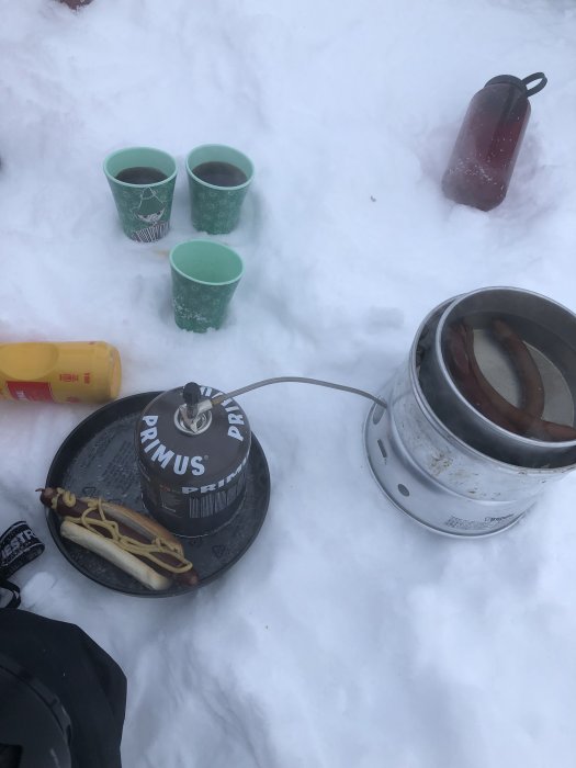 Lunchen lagade vi på vårt Trangia-kök ute på Torne älv, kallt var det -22, då var det svårt att laga mat, även med Primus vintergas.