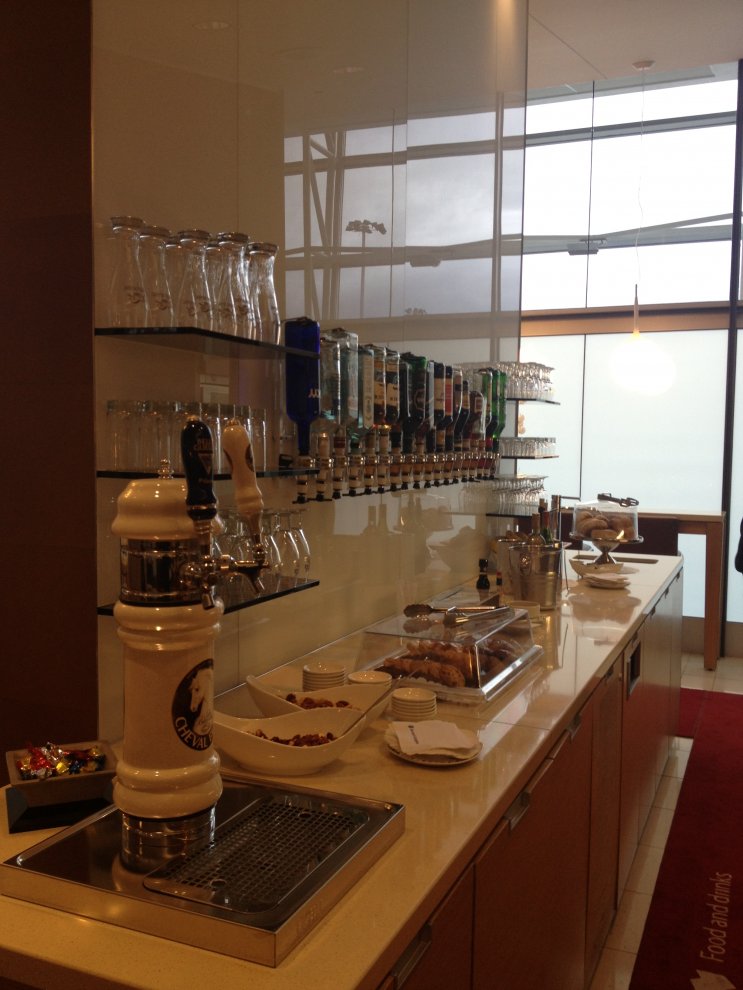 Hälsningar från National Bank World MasterCard Lounge (puh!) på YUL. Gratis tillgång med Diners (kanske). Igorius, jag och tre ytterligare gäster (36 CAD för betalad tillgång). Fritt WiFi på hela flygplatsen. Mycket fin och ny lounge, dock utan fönster.