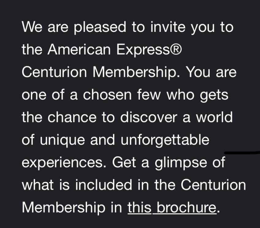Har läst om hur svårt det är att få Centurion, med spend på 2-3 milj/år i många år. Hur är det möjligt att jag fick denna inbjudan? Kommer såklart tacka nej, inte värt 70k.