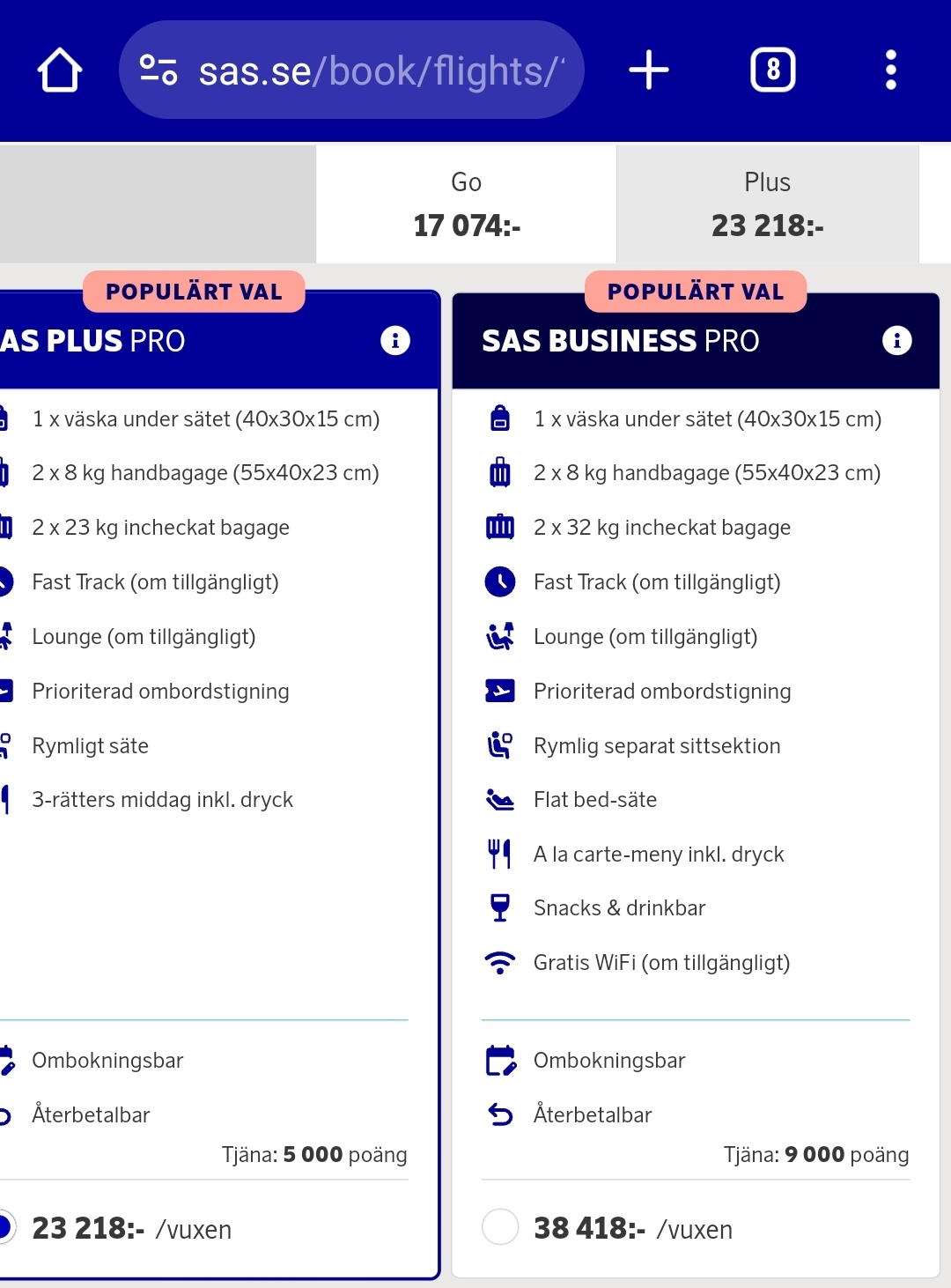 Fick inget när jag klagade i November. Se svar nedan från SAS.