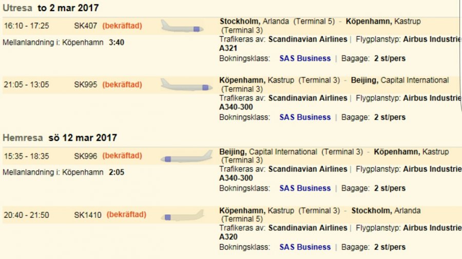 Det är väl 144h visumfritt, eller var det bara för Shanghai?Jag har bokat grundresan till Peking med 1 natt för transfer på utresan på Hilton ute vid flygplatsen. Sen hemresan blev de en bokning på Doubletree inne i stan 3 nätter, ska dock efterforska hur de gäller med 72 timmars visum..