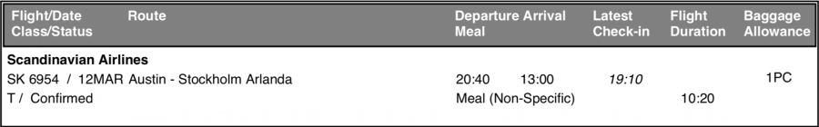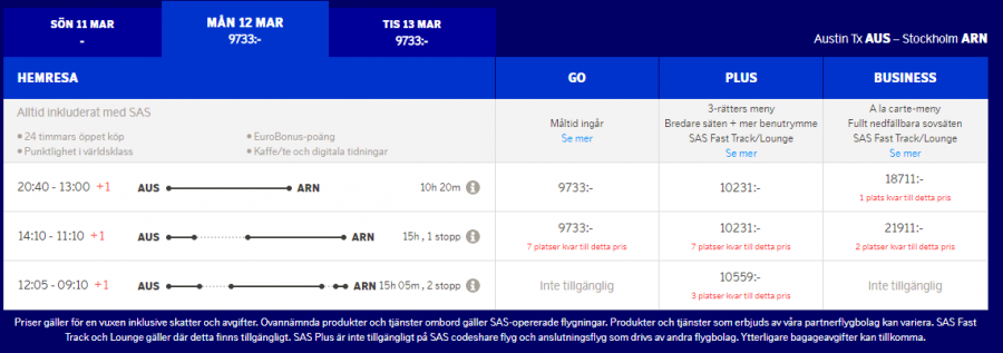 Övriga SAS destinationer har senaste incheckning 90 min innan avgång. För Business/plus/guld är det 60.