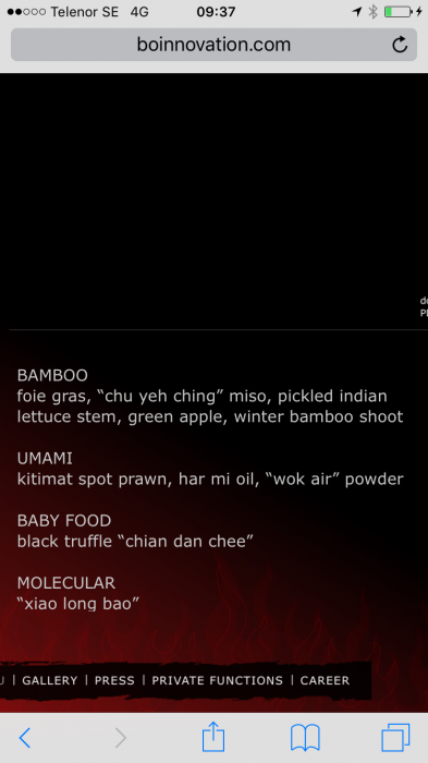 Såg att det även fanns på Bo Innovations hemsida. Vi åt "Chefs Table Menu", här kommer lite screen shots: