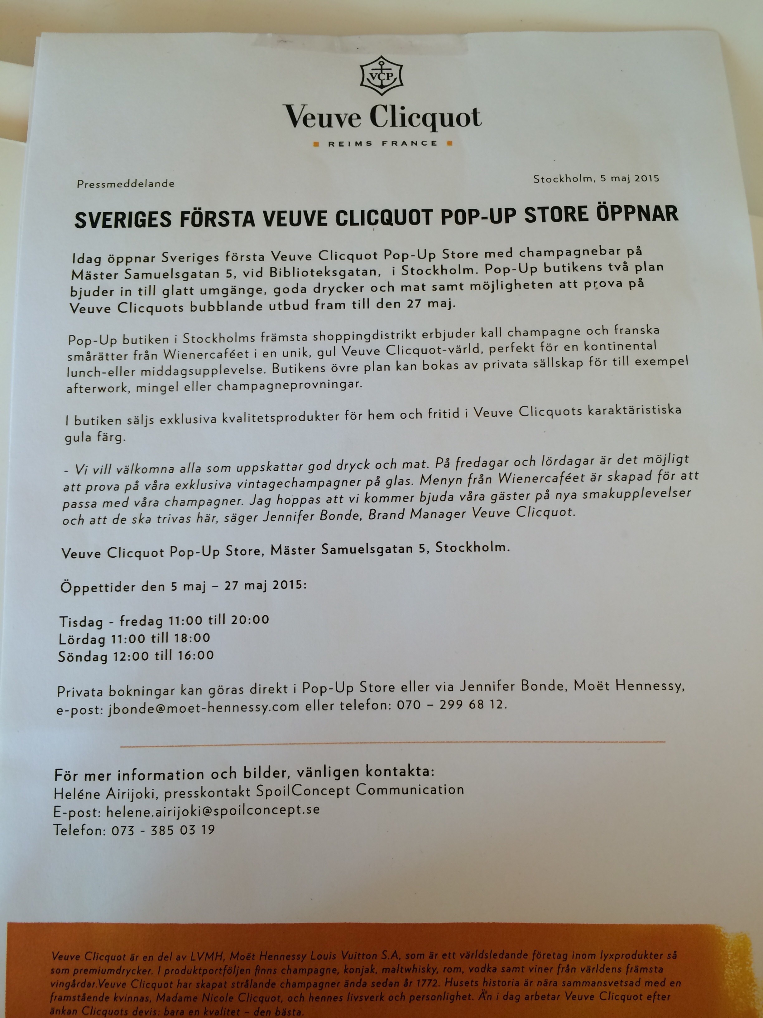Inofficiell BC-träff med ny Champagne 26/5. Veuve Cliqout Pop-up Store Stockholm