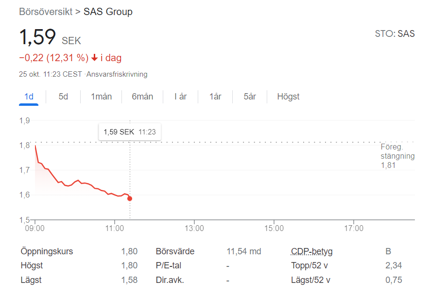 SAS rasar på börsen efter vd-intervju: ”Kämpar för att överleva”