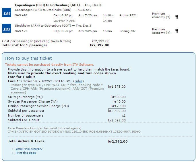 Finns det Fare för detta. Det vanliga är att kunden åker så billigt som möjligt, Eco. Eller så bra det går C/F.Om det inte finns en fare som tillåter det, så kan du lika gärna söka segment för segment med den kabinklass du vill för det måste ändå bokas som end-to-end combination av en resebyrå.